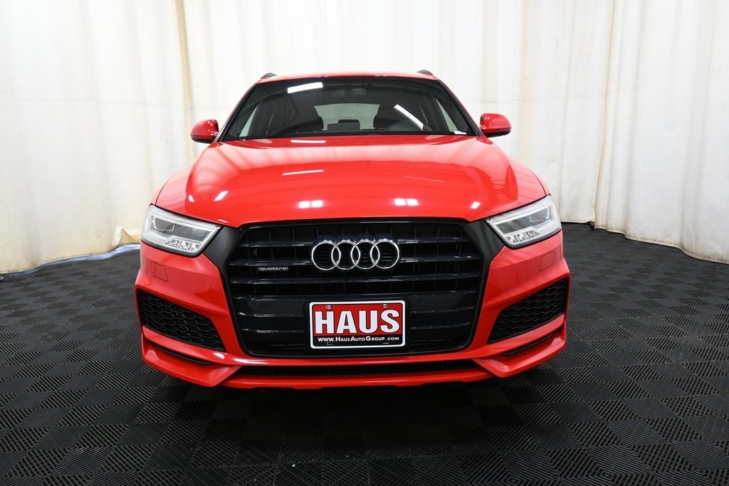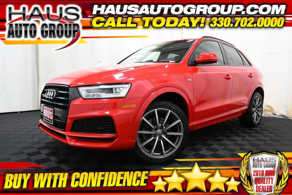 2018 Audi Q3 2.0T Premium Plus quattro Misano Red Pearl Effect 2.0L 4-Cylinder TFSI quattro 6-Speed Automatic with Tiptronic 4-Wheel Disc Brakes, ABS brakes, Aluminum Satellite Inlays, AM/FM radio: SiriusXM, Audi Advanced Key, Audi Beam-Rings, Audi Guard All-Weather Floor Mats w/Q3 Logo, Audi Side Assist, Auto-Dimming Interior Mirror w/Compass, Automatic temperature control, Exterior Parking Camera Rear, Full LED Headlights & LED Taillights, Fully automatic headlights, Gloss Aluminum Exterior Window Surrounds, Heated front seats, Outside temperature display, Power Adjustable/Folding Heated Exterior Mirrors, Power driver seat, Power moonroof, Power Tailgate, Premium Plus Package, Radio: Audi Concert System w/AM/FM Radio, Rear fog lights, Remote keyless entry, Stainless Steel Trunk Edge, Steering wheel mounted audio controls, Traction control, Turn signal indicator mirrors.