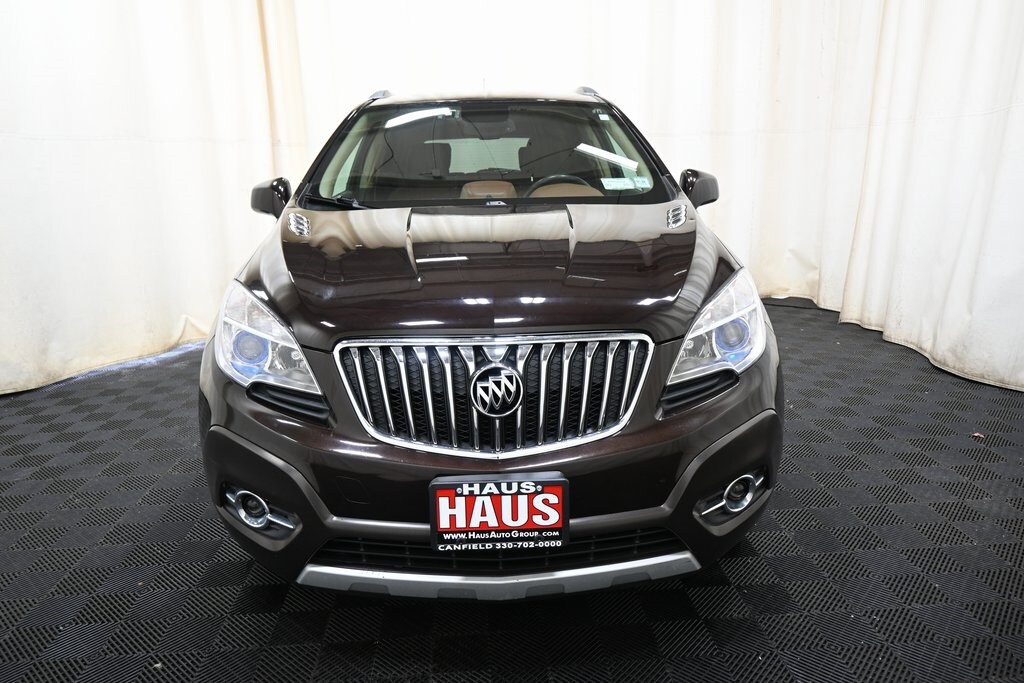 2013 Buick Encore Leather Deep Espresso Brown Metallic ECOTEC 1.4L I4 SMPI DOHC Turbocharged VVT AWD 6-Speed Automatic 120-Volt Power Outlet, 1SL Equipment Group, 4-Wheel Disc Brakes, ABS brakes, Auto-Dimming Inside Rear-View Mirror, Automatic temperature control, Dual-Zone Automatic Climate Control, Exterior Parking Camera Rear, Front Fog Lamps, Fully automatic headlights, Heated Driver & Front Passenger Seats, Heated steering wheel, Memory seat, Power Tilt-Sliding Sunroof, Premium audio system: IntelliLink, Radio: AM/FM Audio System w/Nav/Single CD Player, Remote Vehicle Starter System, SiriusXM Satellite Radio, Steering wheel mounted audio controls, Traction control.