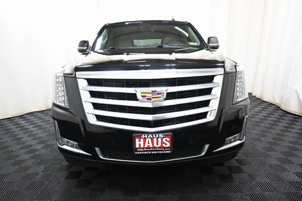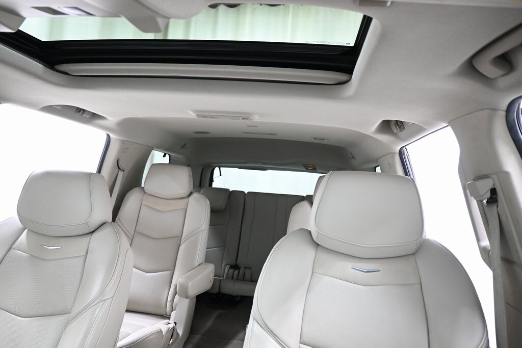 2018 Cadillac Escalade Luxury Black Raven 6.2L Variable Valve Timing V8 SIDI 4WD 10-Speed Automatic with Overdrive 4WD, Shale w/Jet Black Accents w/Leather Seating Surfaces, 12-Way Power Front Passenger Seat Adjuster, 16 Speakers, 2-Position Memory For Driver's Seat Adjuster, 3rd row seats: split-bench, 4-Wheel Disc Brakes, ABS brakes, Apple CarPlay/Android Auto, Automatic temperature control, Bose Centerpoint 16 Speaker Surround Sound System, Driver Awareness Package, Exterior Parking Camera Rear, Forward Collision Alert, Fully automatic headlights, Garage door transmitter, HD Radio, Heads-Up Display, Heated & Cooled Front Bucket Seats, Heated door mirrors, Heated rear seats, Heated steering wheel, Inclination Sensor, IntelliBeam Automatic High Beam On/Off, Lane Change Alert w/Side Blind Zone Alert, Lane Keep Assist w/Lane Departure Warning, Low Speed Forward Automatic Braking, Memory seat, Navigation System, NavTraffic, Pedal memory, Power Liftgate, Power moonroof, Radio: AM/FM Cadillac User Experience w/Nav, Rear Cross-Traffic Alert, Safety Alert Seat, Single Slot CD/MP3 Player, SiriusXM Satellite Radio, Steering wheel memory, Steering wheel mounted audio controls, Theft-Deterrent Alarm System, Theft-Deterrent Package, Traction control, Turn signal indicator mirrors, Vehicle Interior Movement Sensor, Ventilated front seats.
