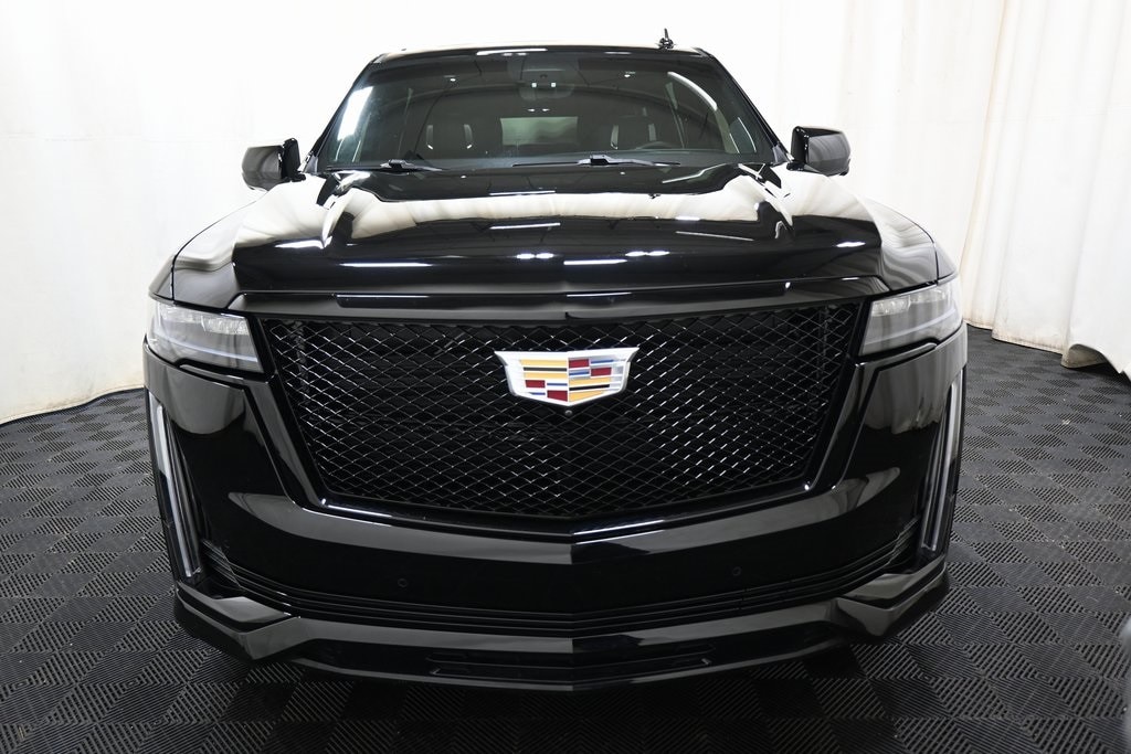 2023 Cadillac Escalade ESV Sport Platinum Black Raven 6.2L V8 AWD 10-Speed Automatic AWD, 16.9" Diagonal OLED Infotainment Screen, 4-Way Power Driver Lumbar Seat Adjuster, 4-Wheel Disc Brakes, 8-Way Power Driver Seat Adjuster, 8-Way Power Front Passenger Seat Adjuster, A/V remote, ABS brakes, Adaptive Cruise Control, Air Ride Adaptive Suspension, AKG Studio Reference 36-Speaker Audio System, Apple CarPlay/Android Auto, Automatic Seat Belt Tightening, Automatic temperature control, Body-Color Door Handles, Door Lock & Latch Shields, Electronic Limited-Slip Differential, Emergency communication system: OnStar and Cadillac connected services capable, Enhanced Automatic Emergency Braking, Enhanced Automatic Parking Assist, Exterior Parking Camera Rear, Floor Console w/Covered Storage, Front Auxiliary 12-volt Power Outlet, Front dual zone A/C, Full Semi-Aniline Leather Seat Trim, Fully automatic headlights, Genuine wood dashboard insert, Glass Breakage Sensor, HD Radio, Heads-Up Display, Heated & Ventilated Driver & Front Passenger Seats, Heated door mirrors, Hitch Guidance w/Hitch View, Illuminating Front & Rear Sill Plates, Integrated Trailer Brake Controller, Navigation System, Outside temperature display, Platinum Interior Trim, Power Liftgate, Power Lumbar Massage Driver Seat, Power Lumbar Massage Front Passenger Seat, Power moonroof, Power Panoramic Tilt-Sliding Sunroof, Preferred Equipment Group 1SH, Radio: AM/FM w/Navigation, Rear Camera Mirror, Rear Camera Mirror Washer, Rear Cross Traffic Alert, Rear Seat Entertainment System, Reconfigurable Full-Color Head-Up Display, Remote keyless entry, Reverse Automatic Braking, Running Board Assist Steps, SiriusXM w/360L, Smart Trailer Integration Indicator, Soft Closing Front & Rear Doors, Steering wheel mounted audio controls, Super Cruise, Teen Driver, Theft-Deterrent Alarm System, Touring Package, Traction control, Trailer Side Blind Zone Alert, Vehicle Inclination Sensor, Vehicle Interior Movement Sensor, Wireless Apple CarPlay/Wireless Android Auto.