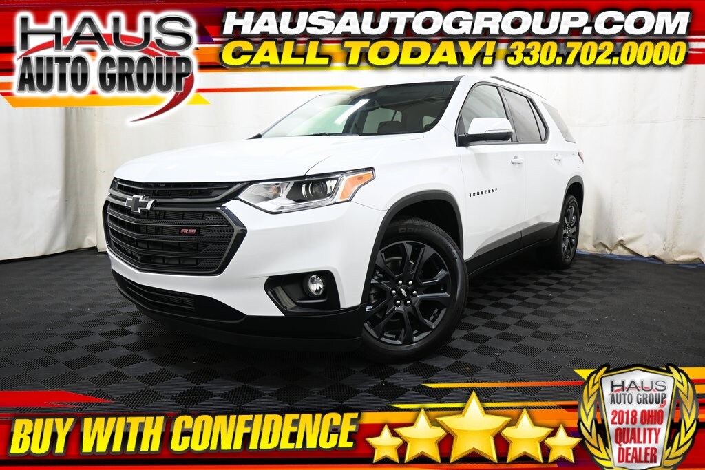 2021 Chevrolet Traverse RS Summit White 3.6L V6 SIDI VVT AWD 9-Speed Automatic AWD, 10 Speakers, 1st & 2nd Row All-Weather Floor Liner (LPO), 3rd Row All-Weather Floor Liner (LPO), 3rd row seats: split-bench, 4-Wheel Disc Brakes, 7-Passenger Seating (2-2-3 Seating Configuration), ABS brakes, AM/FM radio: SiriusXM with 360L, Apple CarPlay/Android Auto, Automatic temperature control, Bose Premium 10-Speaker Audio System Feature, Dual SkyScape 2-Panel Power Sunroof, Floor Liner Package (LPO), Front fog lights, Fully automatic headlights, Gloss Black Emblem Kit (LPO), Heated door mirrors, Heated front seats, Heated steering wheel, Integrated Cargo Liner (LPO), Leather-Appointed Seat Trim, Navigation System, Outside temperature display, Power Liftgate, Preferred Equipment Group 2LT, Radio: Chevrolet Infotainment 3 Premium System, Remote keyless entry, SiriusXM w/360L, Steering wheel mounted audio controls, Traction control, Turn signal indicator mirrors.