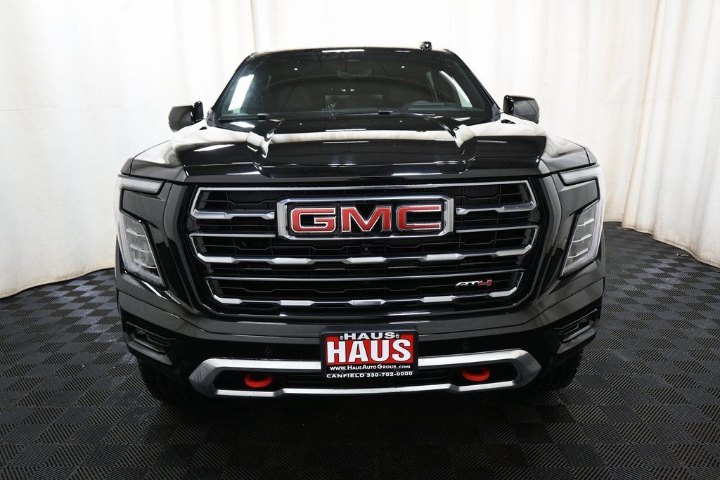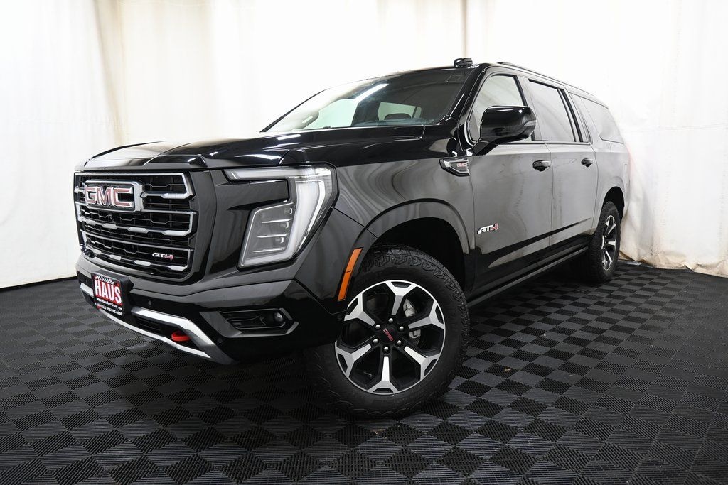 2025 GMC Yukon XL AT4 Black EcoTec3 6.2L V8 4WD 10-Speed Automatic with Overdrive 4WD, 10 Speakers, 3rd row seats: split-bench, 4-Way Power Driver Lumbar Seat Adjuster, 4-Wheel Disc Brakes, ABS brakes, Adaptive suspension, Apple CarPlay/Android Auto, AutoSense Hands-Free Power Liftgate, Bose 10-Speaker Surround with CenterPoint, Dual Exhaust System, Exterior Parking Camera Rear, Front dual zone A/C, Front fog lights, Front reading lights, Fully automatic headlights, Heated Driver and Front Passenger Seats, Heated rear seats, Heated steering wheel, Hill Descent Control, Magnetic Ride Control Suspension, Memory seat, Navigation system: GMC Connected Navigation, Outside temperature display, Perforated Heather and Ventilated Driver and Front Passenger Seats, Power door mirrors, Power driver seat, Power Liftgate, Radio: 16.8" Diagonal Premium GMC Infotainment System, Remote keyless entry, SiriusXM with 360L, Speed-sensing steering, Steering wheel memory, Steering wheel mounted audio controls, Traction control, Turn signal indicator mirrors.