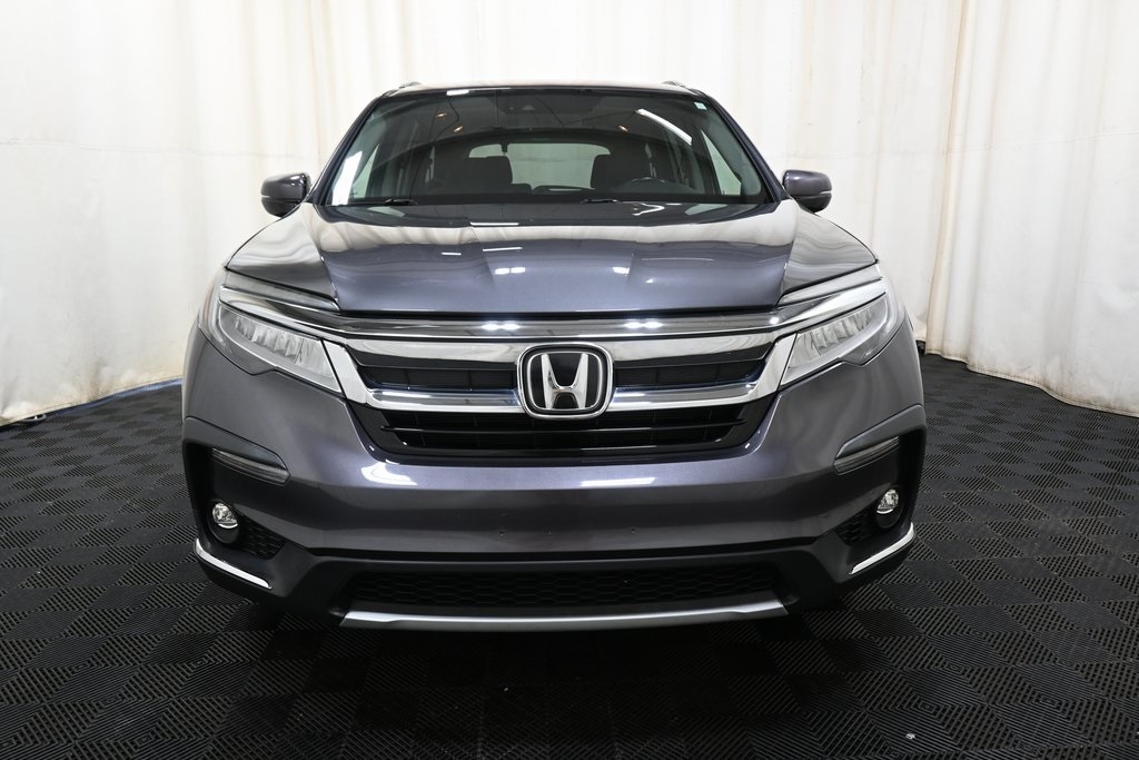 2019 Honda Pilot Elite Modern Steel Metallic 3.5L V6 24V SOHC i-VTEC AWD 9-Speed Automatic AWD, 3rd row seats: split-bench, 4-Wheel Disc Brakes, A/V remote: CabinControl, ABS brakes, AM/FM radio: SiriusXM, Apple CarPlay/Android Auto, Automatic temperature control, Exterior Parking Camera Rear, Front Bucket Seats, Front fog lights, Fully automatic headlights, Heated & Ventilated Front Bucket Seats, Heated door mirrors, Heated front seats, Heated rear seats, Memory seat, Navigation system: Honda Satellite-Linked Navigation System, Perforated Leather-Trimmed Seats, Power driver seat, Power Liftgate, Power moonroof, Radio: AM/FM Premium Audio System, Remote keyless entry, Steering wheel mounted audio controls, Traction control, Turn signal indicator mirrors.