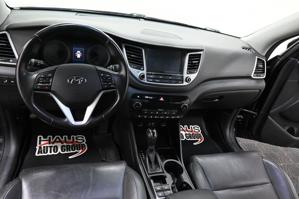 2018 Hyundai Tucson Limited Black Noir Pearl 1.6L I4 DGI Turbocharged DOHC 16V ULEV II 175hp FWD 7-Speed Automatic 4-Wheel Disc Brakes, 4.2" Color LCD Electroluminescent Cluster, ABS brakes, AM/FM radio: SiriusXM, Apple CarPlay & Android Auto, Automatic Emergency Braking (AEB), Automatic temperature control, Exterior Parking Camera Rear, Front & Rear LED Maplights, Front dual zone A/C, Fully automatic headlights, Heated door mirrors, Heated Front Bucket Seats, Heated Rear Seats, High-Intensity Discharge Headlights, Lane Departure Warning System, Navigation System, Option Group 02, Panoramic Sunroof, Power Liftgate, Radio: AM/FM/HD Radio/MP3/Navigation Audio System, Rear Parking Sensors, Remote keyless entry, Steering wheel mounted audio controls, Traction control, Turn signal indicator mirrors, Ultimate Package 02, Ventilated Front Seats.