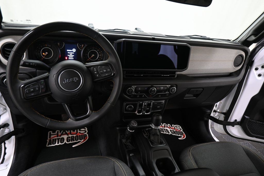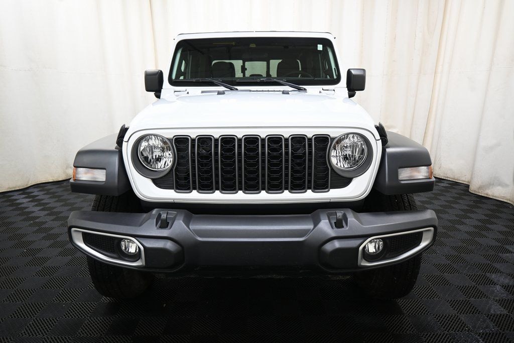2025 Jeep Gladiator Sport S Bright White Clearcoat 3.6L V6 24V VVT 4WD 8-Speed Automatic 4-Wheel Disc Brakes, ABS brakes, Advanced Brake Assist, AM/FM radio: SiriusXM, Apple CarPlay, Apple CarPlay/Android Auto, Automatic Headlamps, Black 3-Piece Hard Top, Deep Tint Sunscreen Windows, Delay-off headlights, Enhanced Adaptive Cruise Control, Freedom Panel Storage Bag, Front fog lights, Full Speed Forward Collision Warning Plus, Google Android Auto, Normal Duty Plus Suspension, Outside temperature display, ParkView Rear Back-Up Camera, Power Heated Mirrors, Premium Wrapped Steering Wheel, Quick Order Package 24S Sport S, Radio: Uconnect 5 w/12.3" Display, Rear Sliding Window, Rear Window Defroster, Remote keyless entry, Security Alarm, Speed control, Steering wheel mounted audio controls, Sun Visors w/Illuminated Vanity Mirrors, Traction control, USB Host Flip, Wheels: 17" x 7.5" Gray.